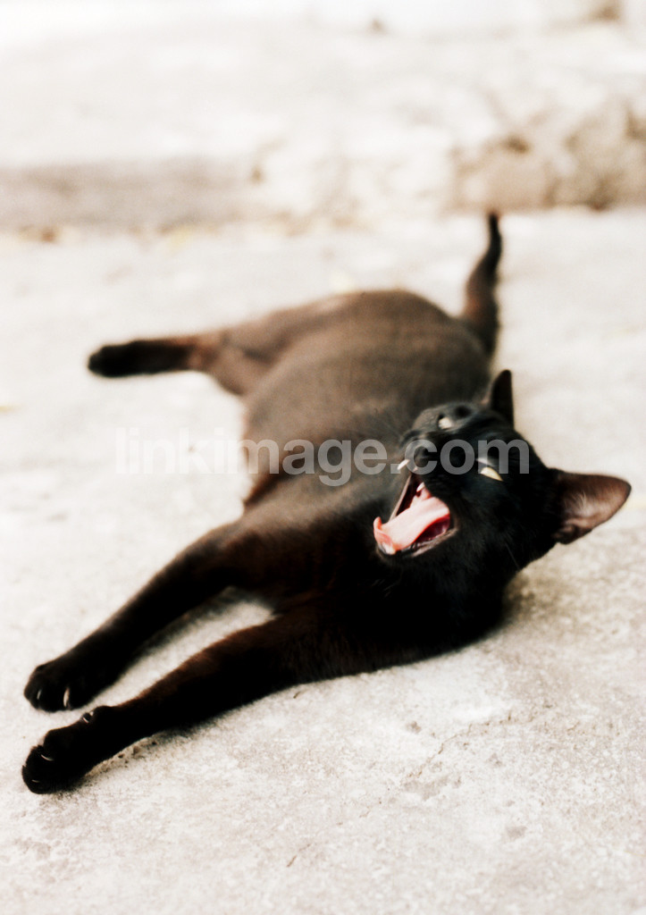 - Black cat yawning