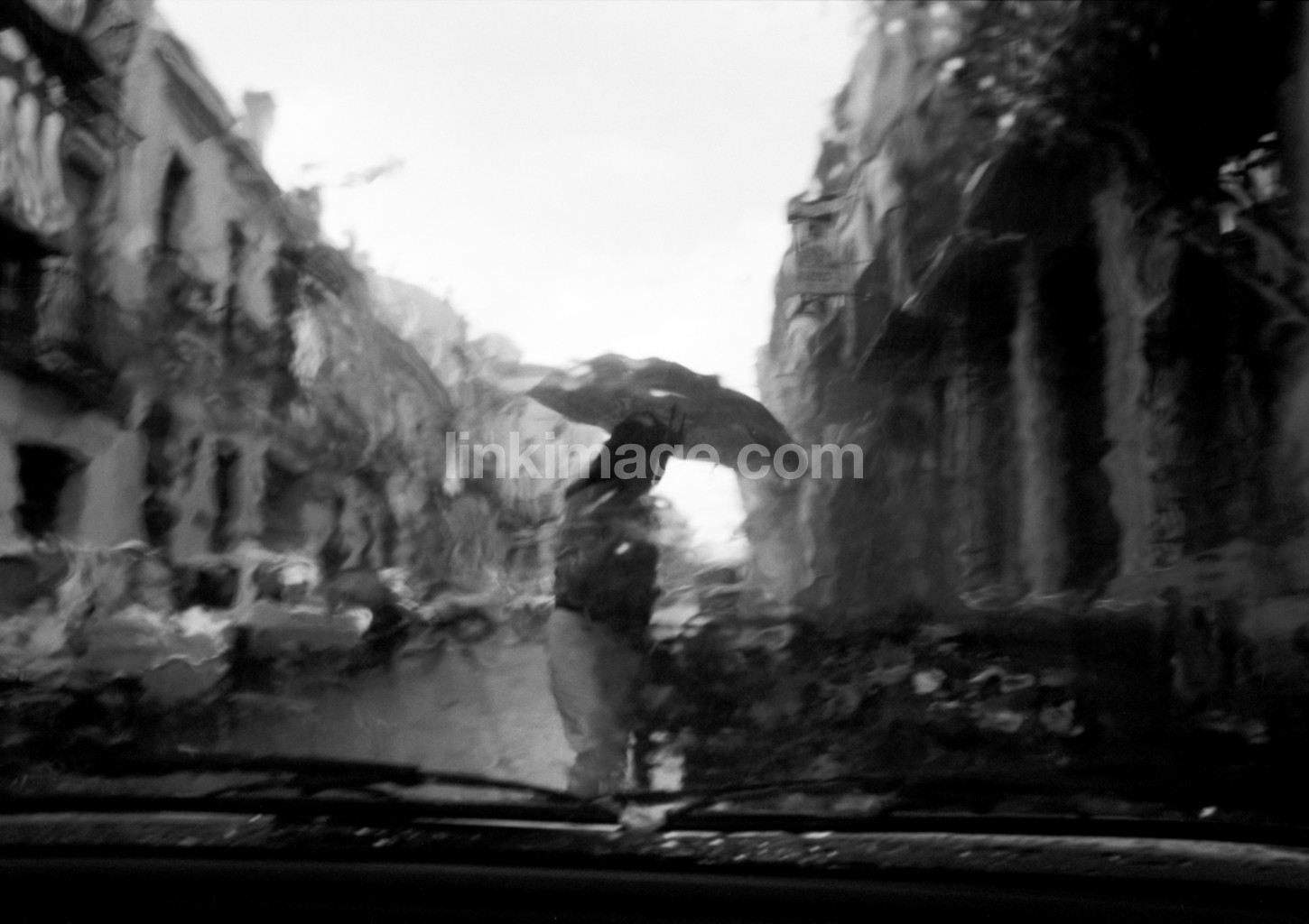 - rain, street, umbrella, car window, storm, city, house, buildings, car, cars, parked, rainstorms, wet