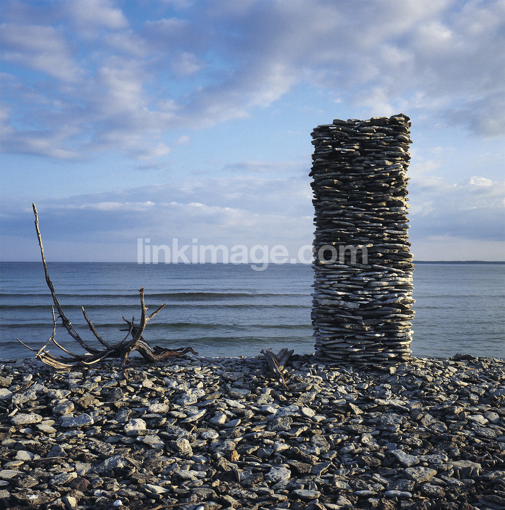 - sea, stone, shore, sky, cloud, nature, sculpture, summer, pebble beach, branch, water, spot, still, quiet, peaceful, stone sculpture