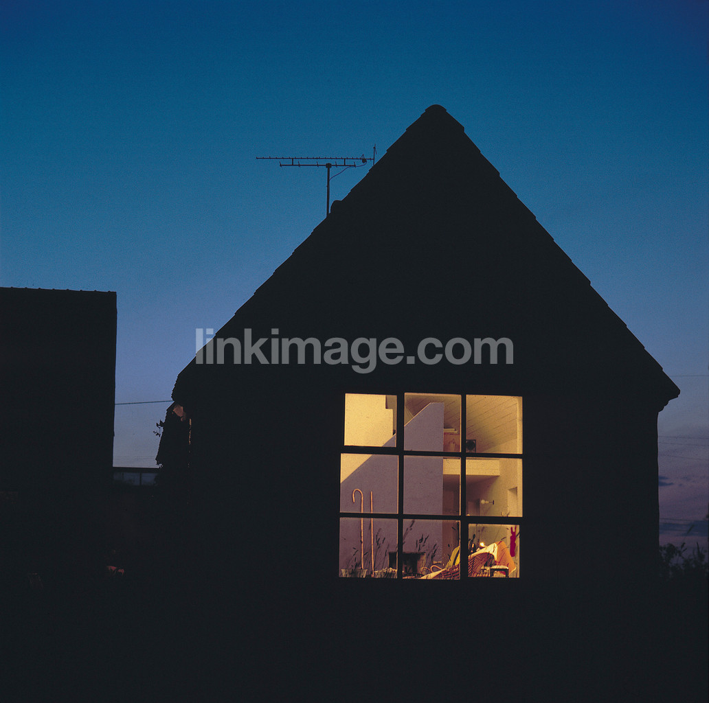 - exterior, house, architecture, façade, evening, dusk, buildings, villa, lit, light, dark, silhouette, window