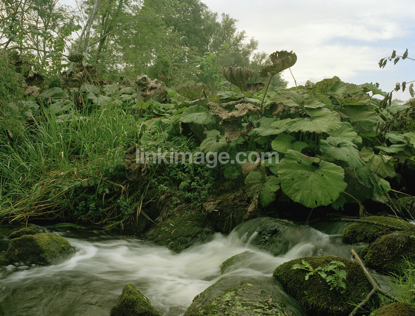 stream, on, stone, plants, water