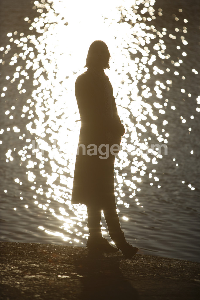 - profile, silhouette, backlight, black, portrait, sl499, full-length, water, lake, summer