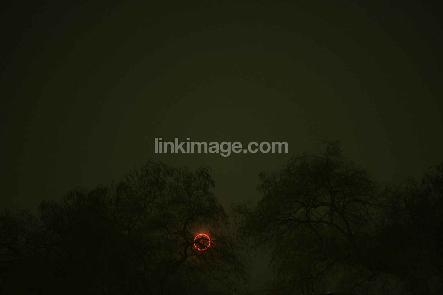 evening, night, dark, nature, forest, tree, sky, clock, red, neon, light, hidden, detail, sl913