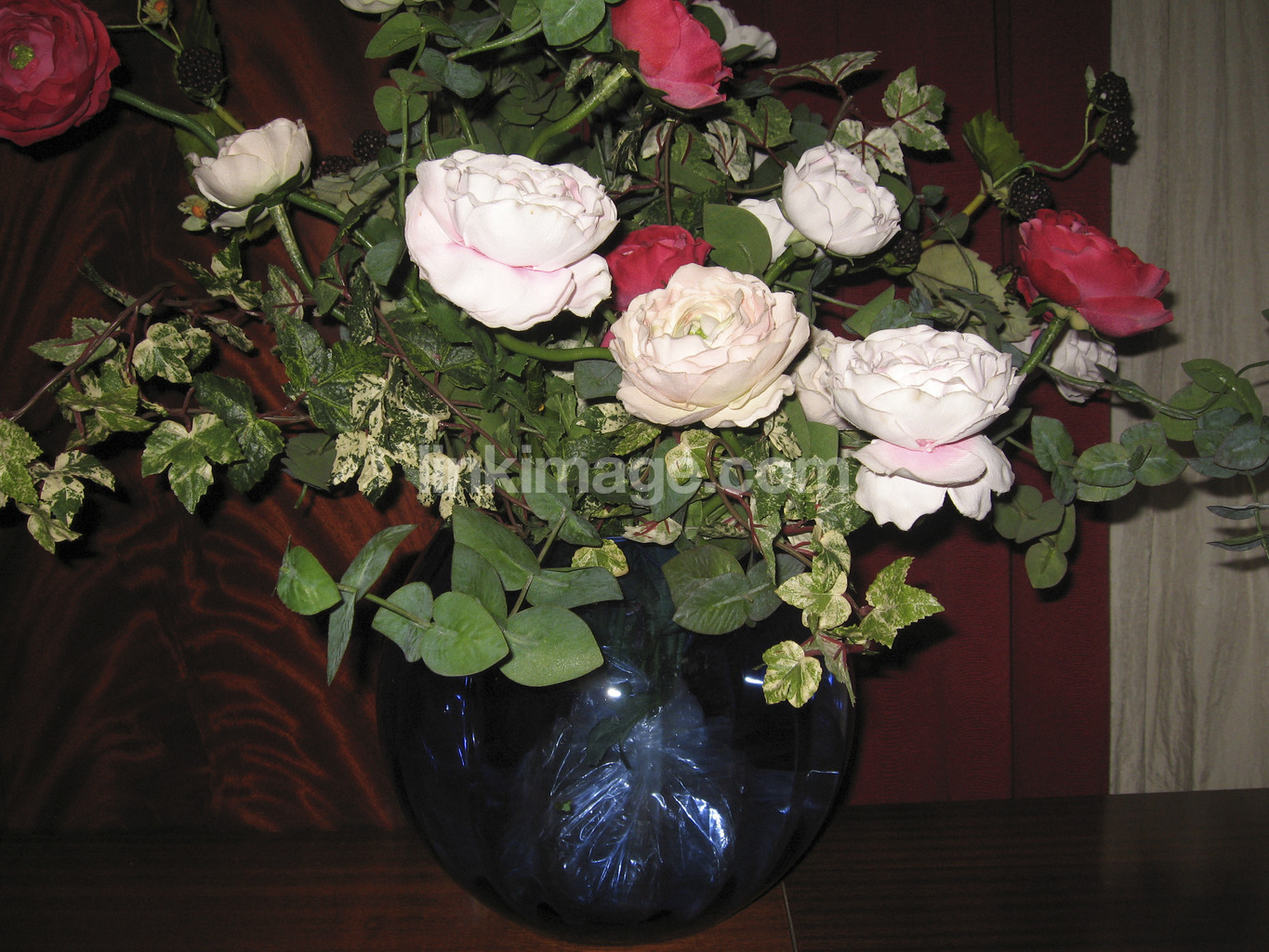 flowers, roses, pink, red, bouquet, vase, branch, leaf, petal, green, sl931