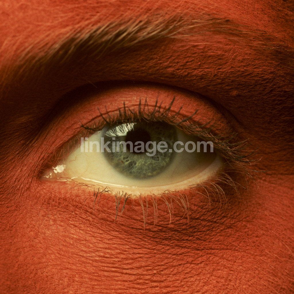 - eye, close-up, human, makeup, red, pupil, eyes white, detail, painted