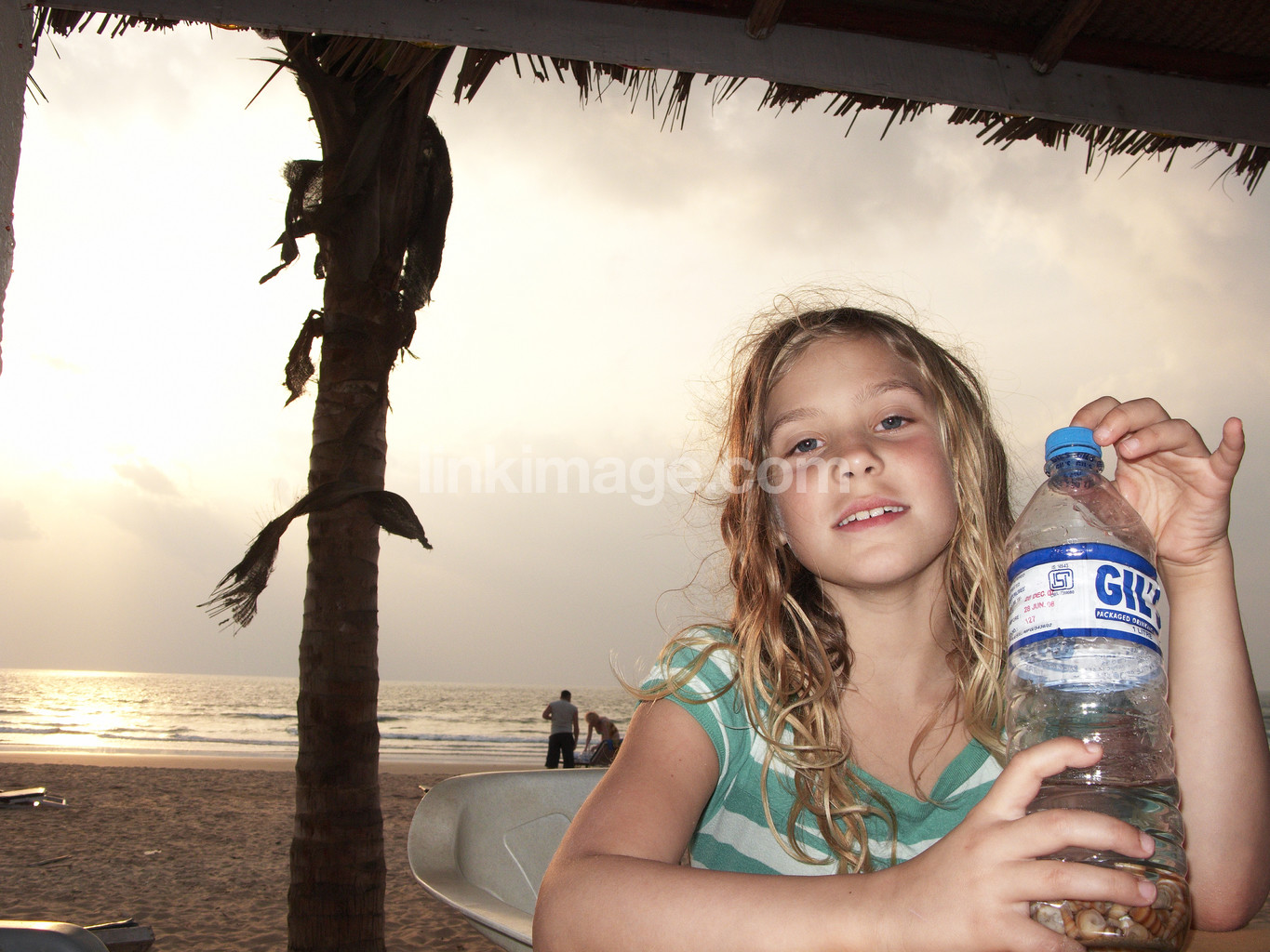 girl, children, drinking, water, summer, sun, shore, sand, sea, holiday, charter, horizon, sky