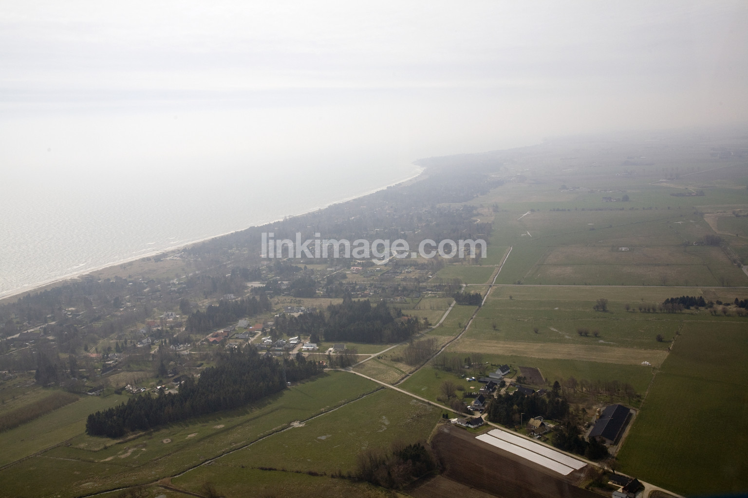 sea, sky, buildings, skåne, water, flight, views, field, horizon, coast, coastline