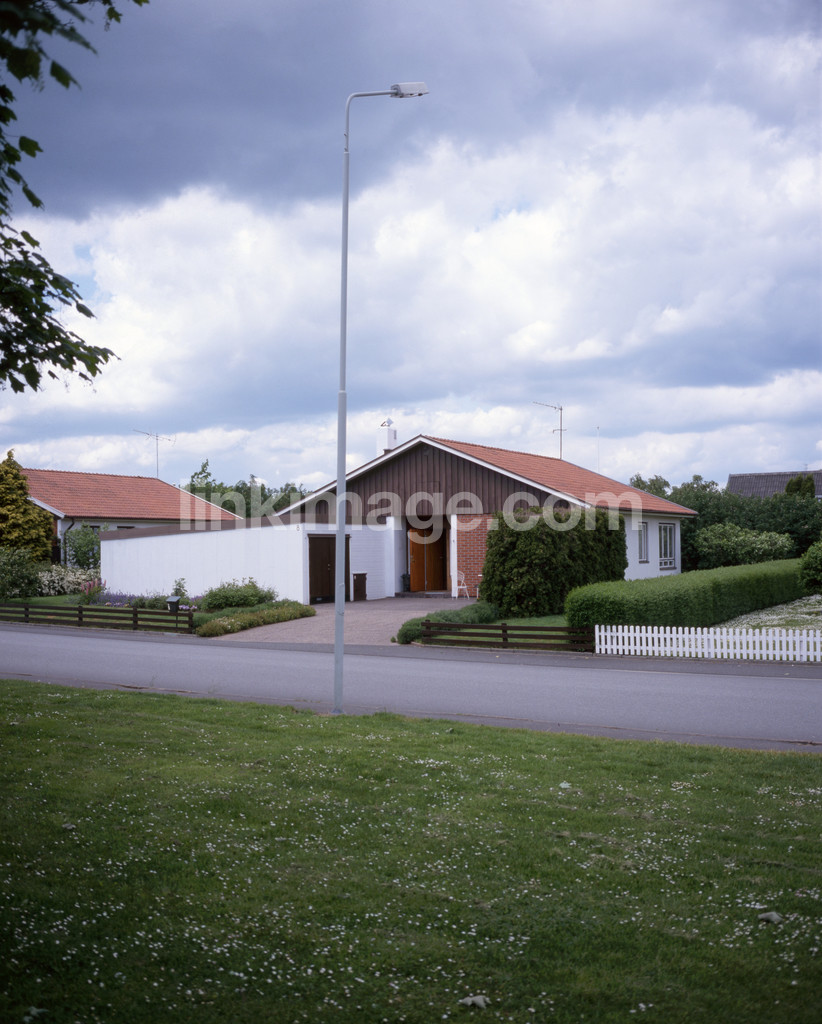 cloud, lamppost, lawn, villa, house, street, fence, lodging, home