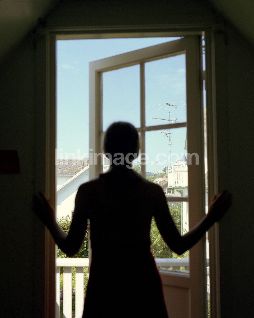 - female, silhouette, crave, dreaming, balcony, balcony door, door, mood