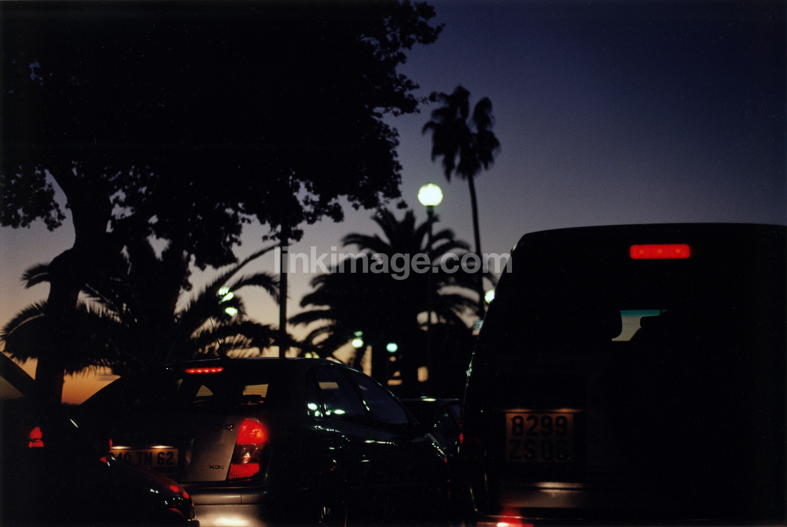 - city, night, evening, dusk, car, cars, palm, palms, aw002, traffic jam, traffic, life, nightclubs
