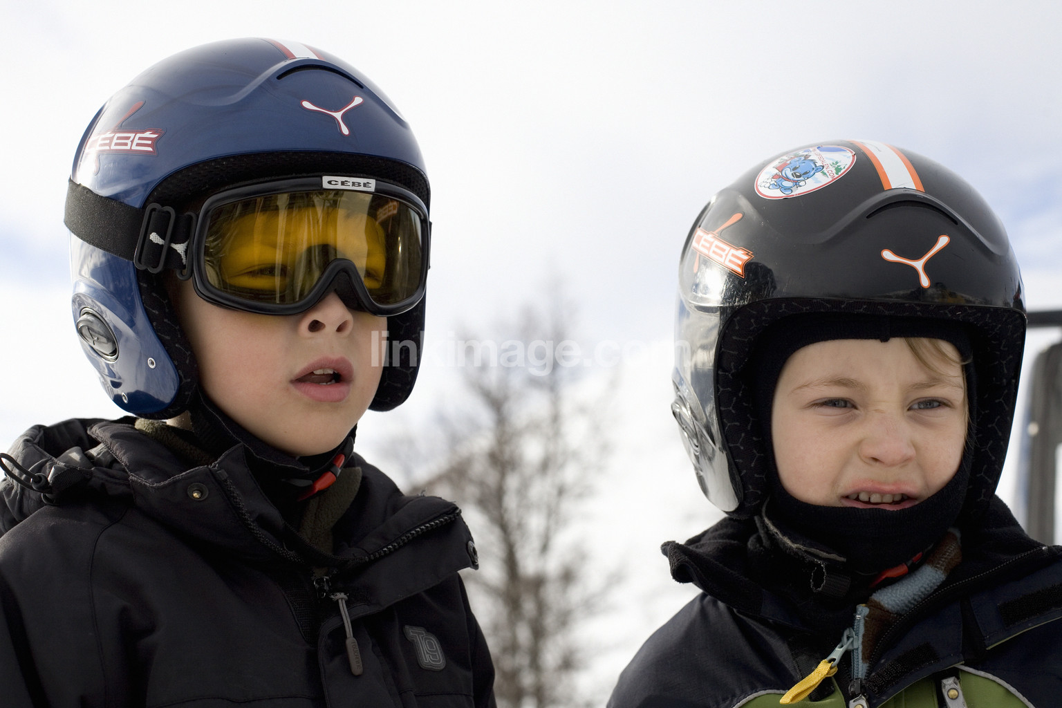 - boys, helmets, ski goggles, winter, concentrated, protection, protect, leisure, recreational, holiday, gaze, nature, cold, clothed