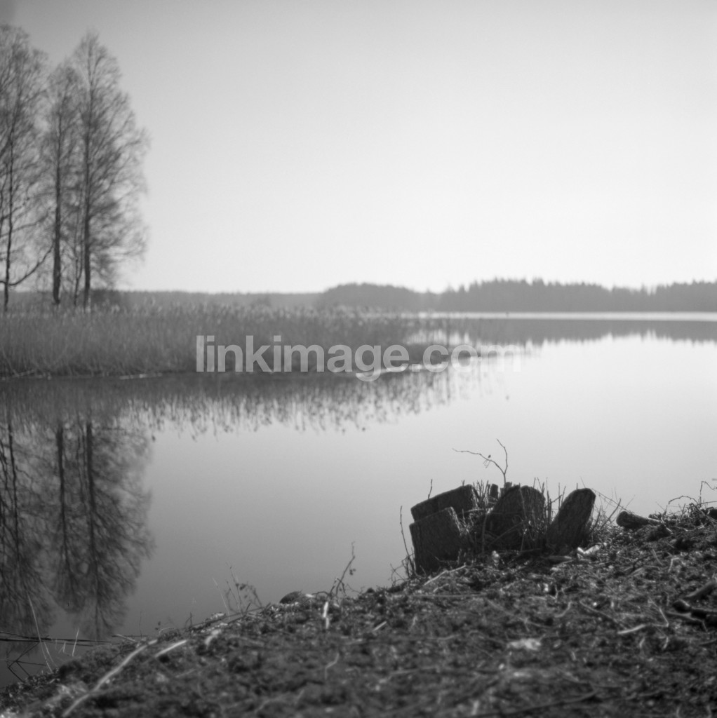 spring, water, cut, clear, quiet, sky, spot, view, forest, stump, lake