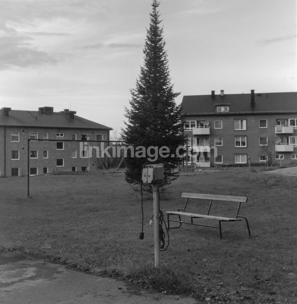 - tree, yard, bench, evening, home, spruce, homes, park, park bench