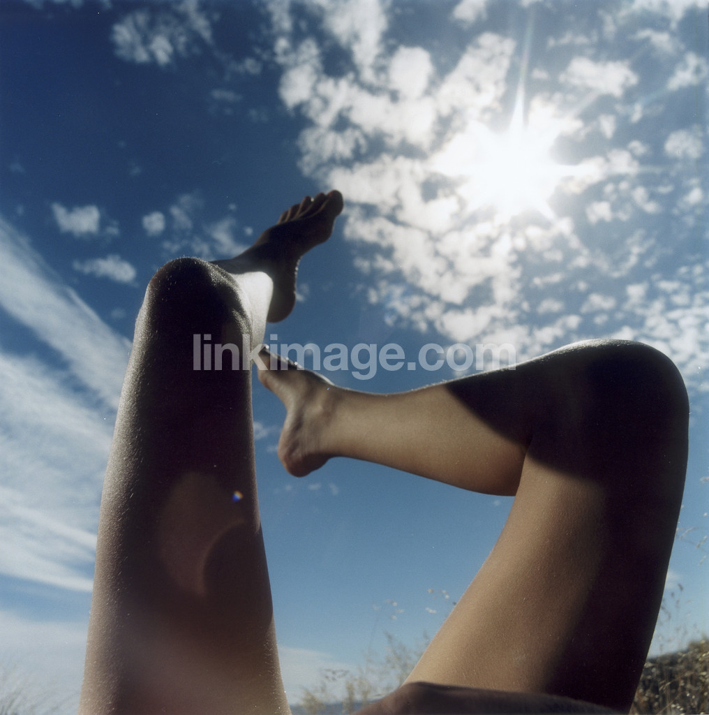 sky, shadow, cloud, sun, sunlight, light, bone, foot, feet, knee, bending, aw055
