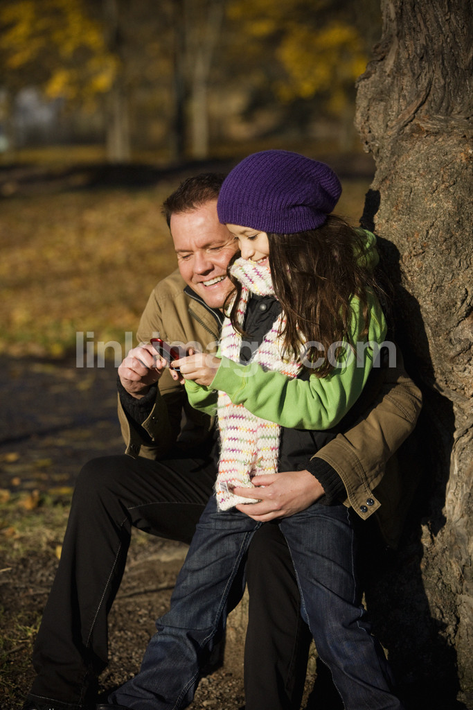 dad, children, out, park, mobile, plug, girl, fall, telephone, father, security, excursion, cap