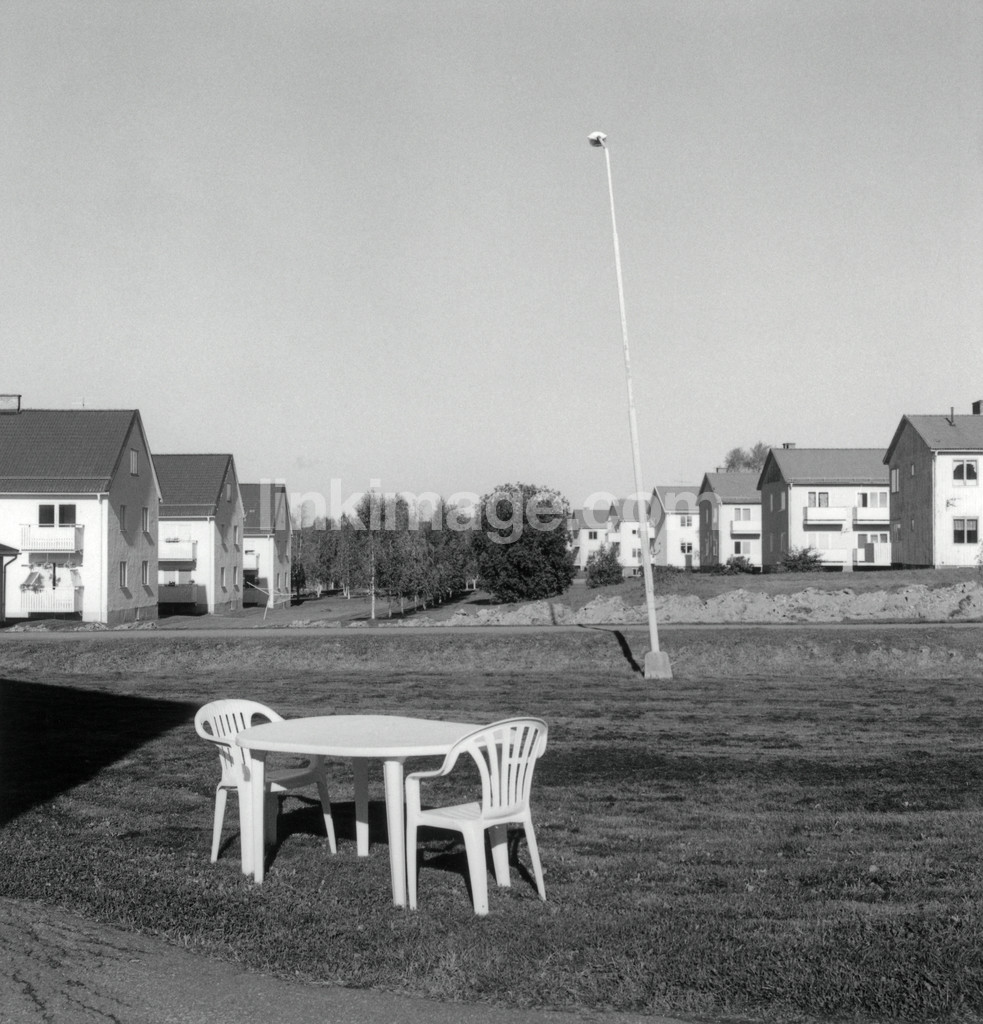 Garden furniture and residential buildings.