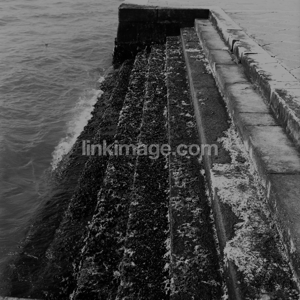 staircase, water, sea, lake, stone, clams, seaweed, fall, waves, wind, weather, step