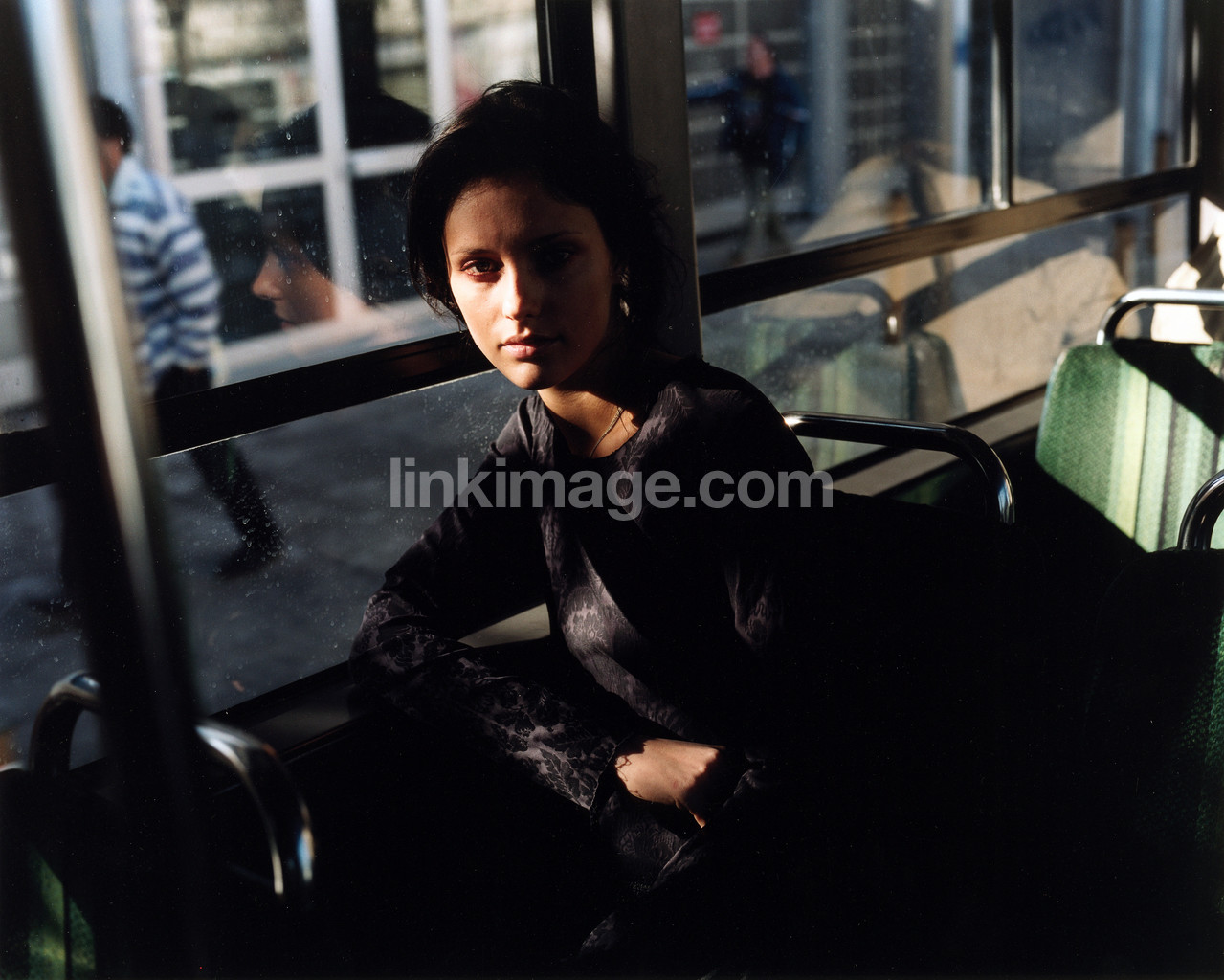 - girl, sitting, bus, seat, seating, aw094, gaze, looking