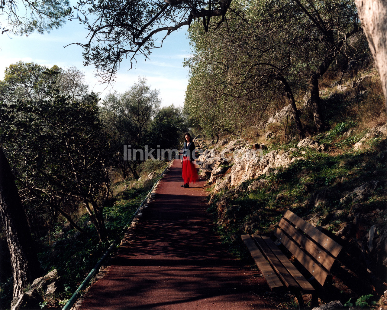 - path, time, walkway, female, girl, tree, bench, forest, is, aw096