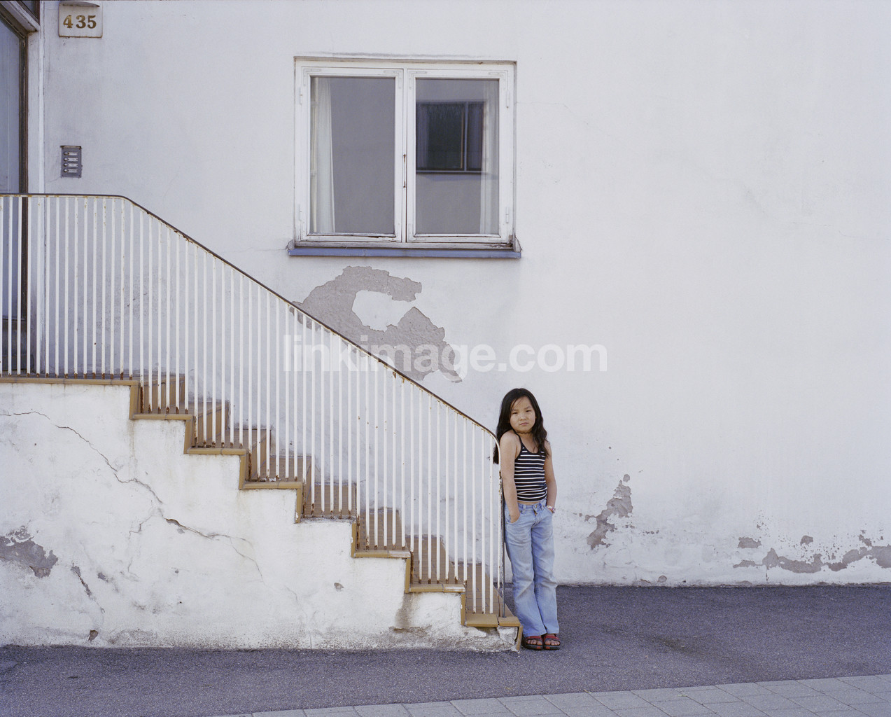 - children, tough, staircase, functionalist, architecture, girl, window, alone