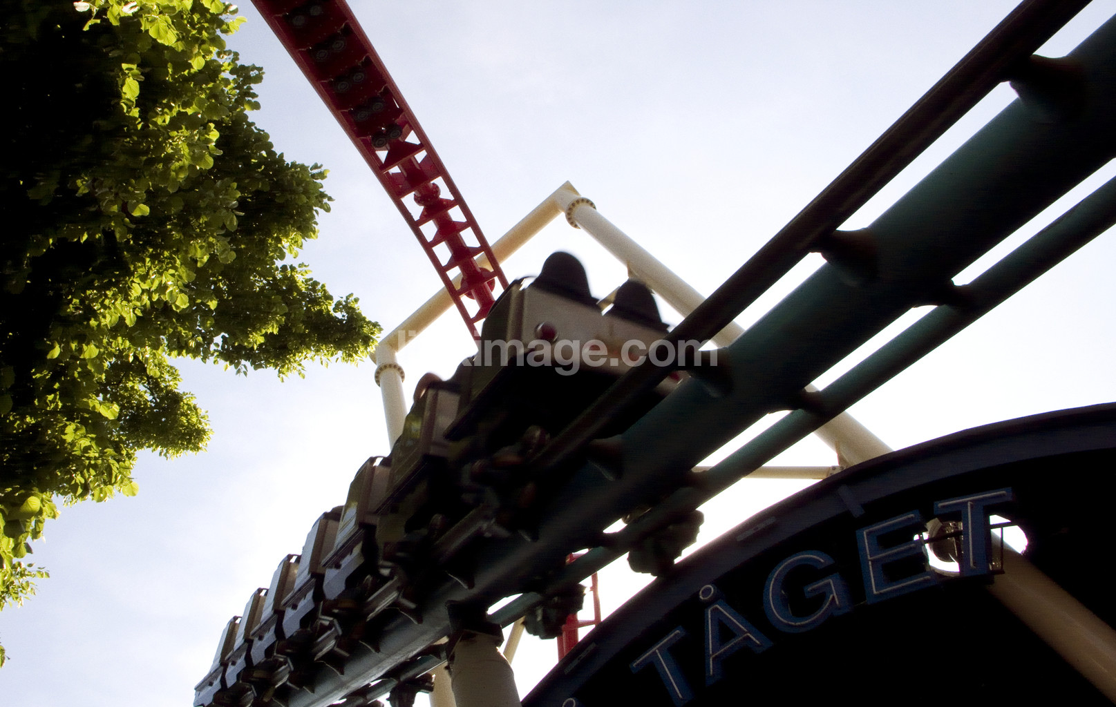 - funfair, rollercoaster, summer, sky, colors, pleasure, train, tree, fairgrounds