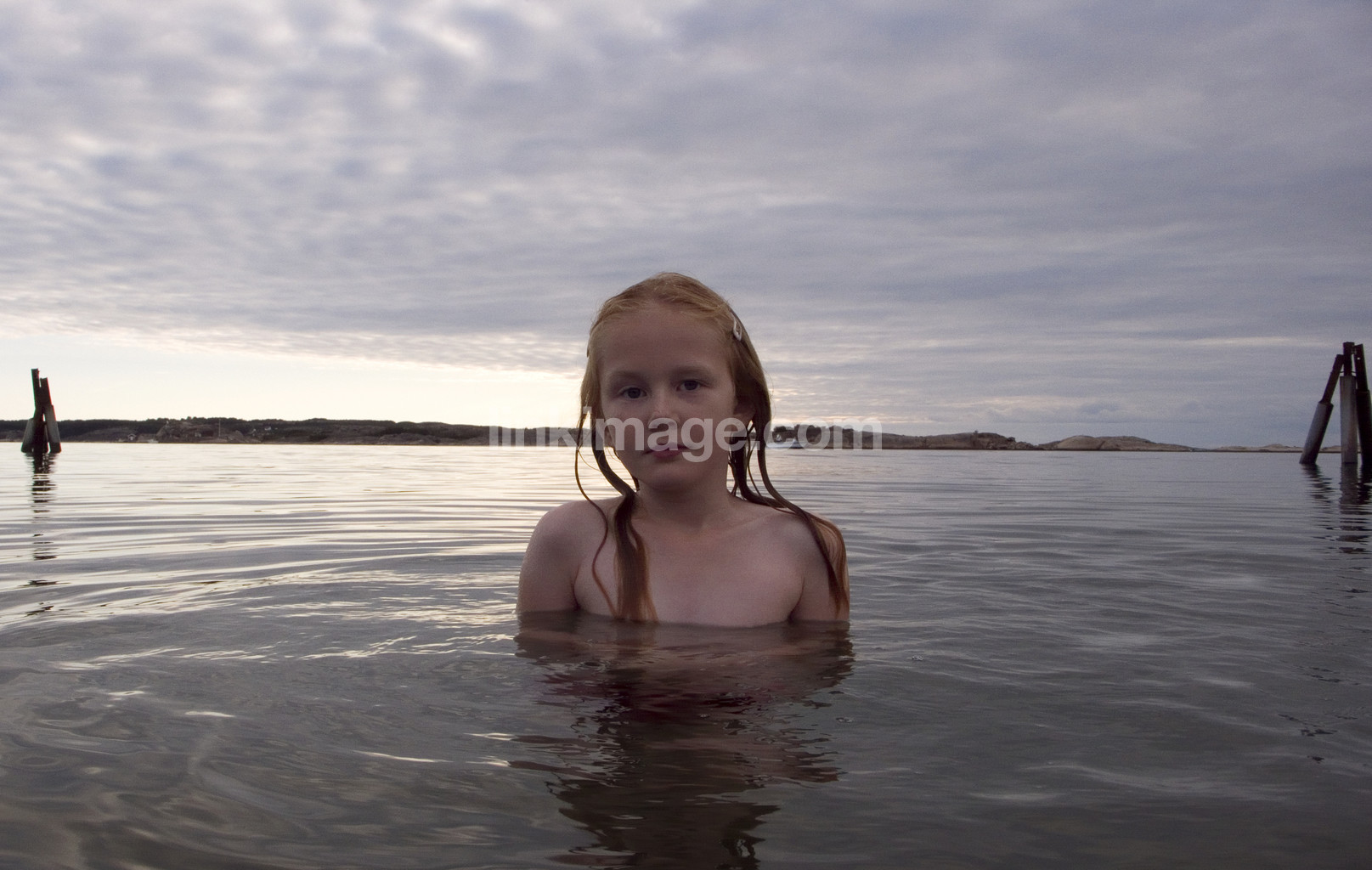 - girl, summer, bath, sea, lake, water, sky, dusk, portrait