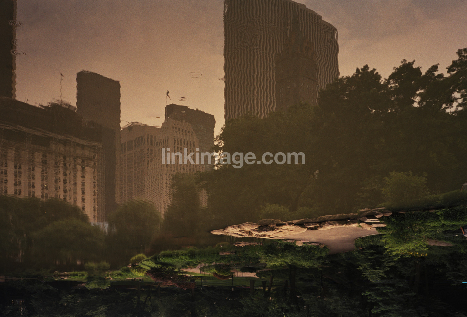 water, lake, park, city, house, high, tree, nature, garden, sky, dusk, buildings, rise, skyscraper, reflection