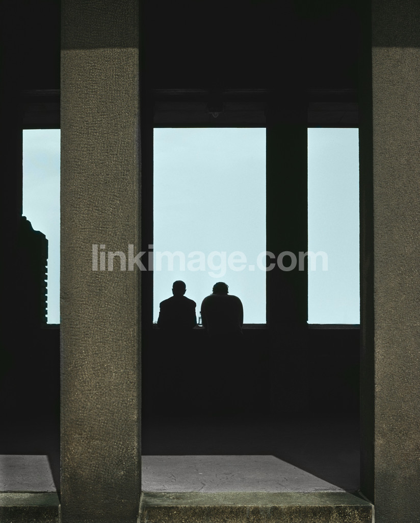 - friends, couple, people, silhouette, graphic, column, shadows, building, pattern, window, rest, break, lunch, out, two