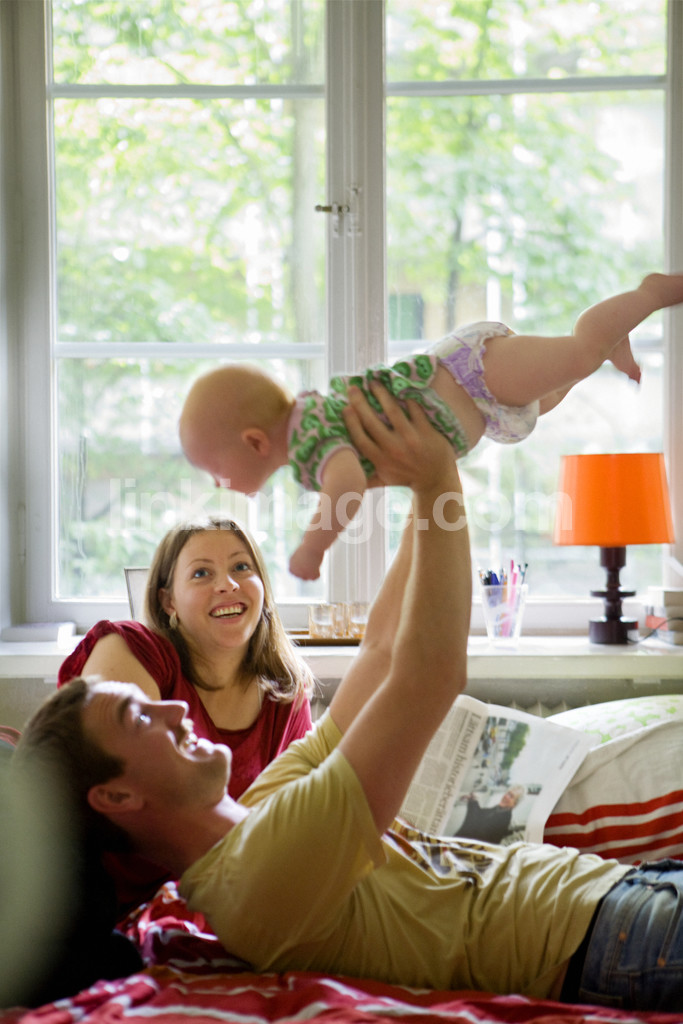 - family, bed, play, plug, mother, dad, father, baby, children, window, apartment, unscheduled