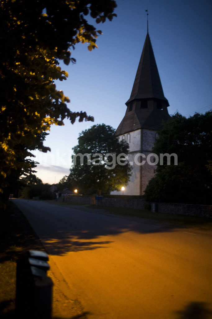 church, night, road, mailbox, gotland, summer, think, religion, tower, lamp, light