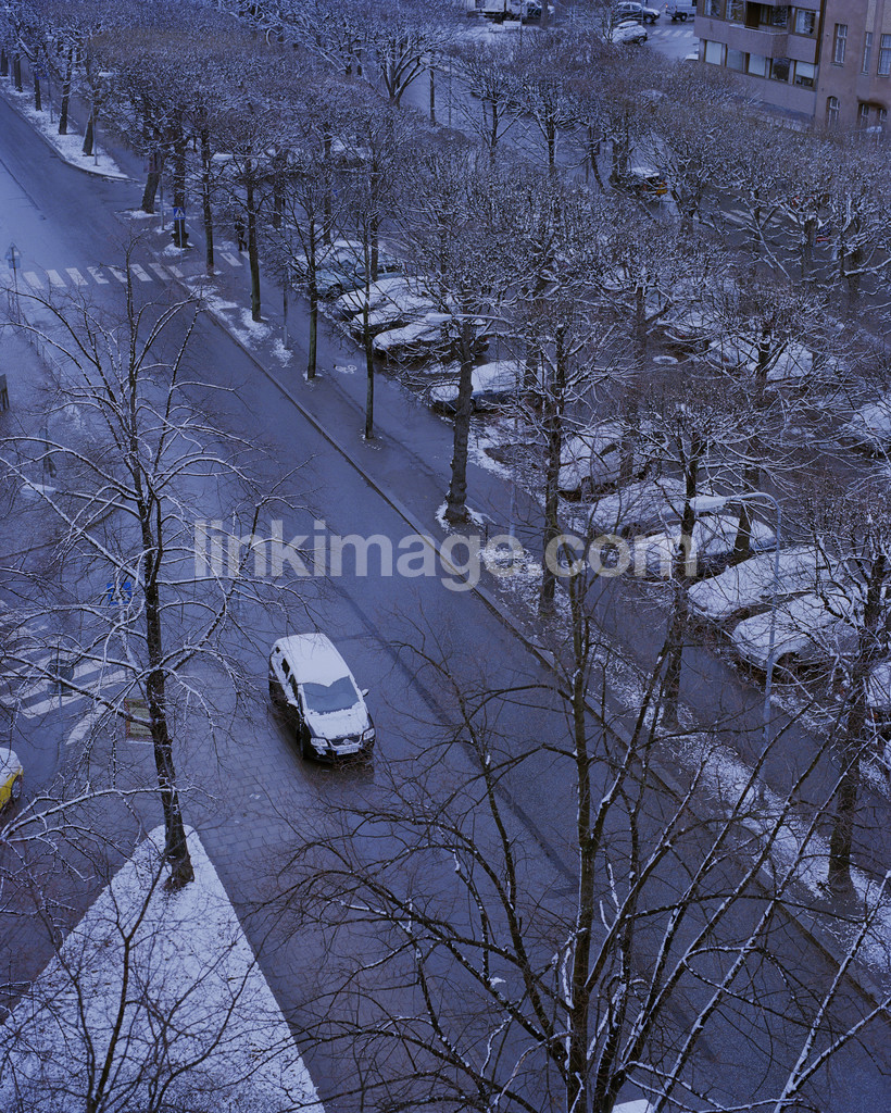 city, street, spring, winter, graphic, snow, views, cars, parking, tree, car, traffic, inner city