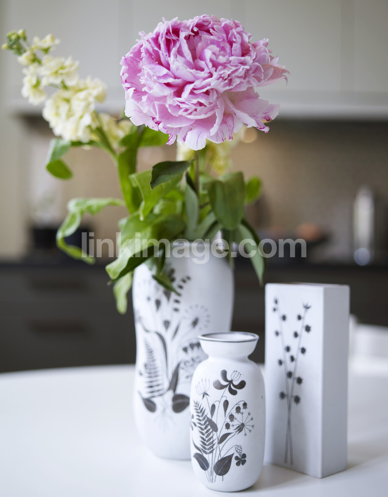 - flowers, jars, vases, home, collection, colors, design, housing, still life, spring, light, pink, kitchen