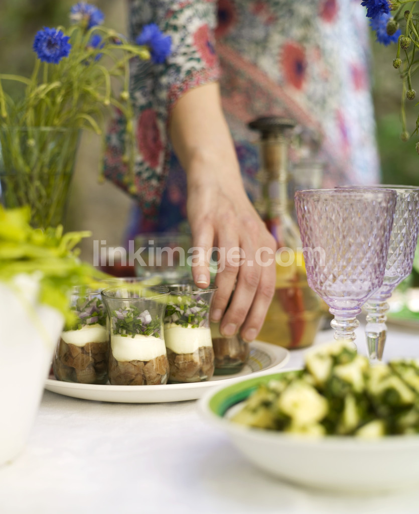- summer, midsummer, flowers, food, hand, female, feast, glass