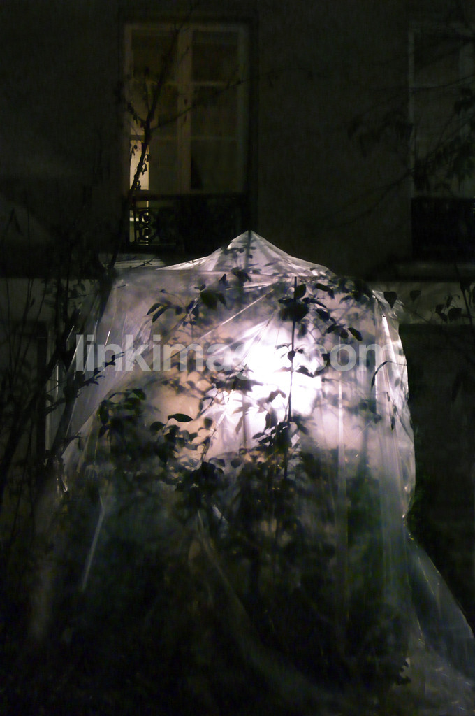 night, plastic, city, building, voltage, mystery, window, covered, packed, tree, leaf, light, lamp