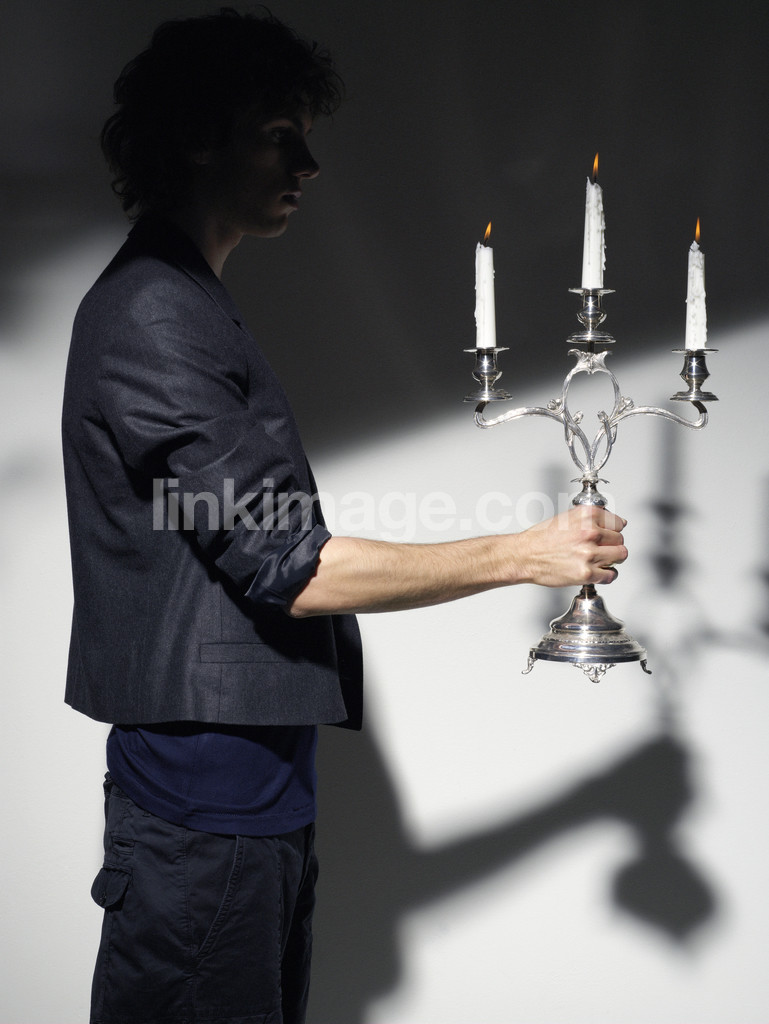 - male, guy, candelabra, shadows, stearic, light, shadow, arm, profile