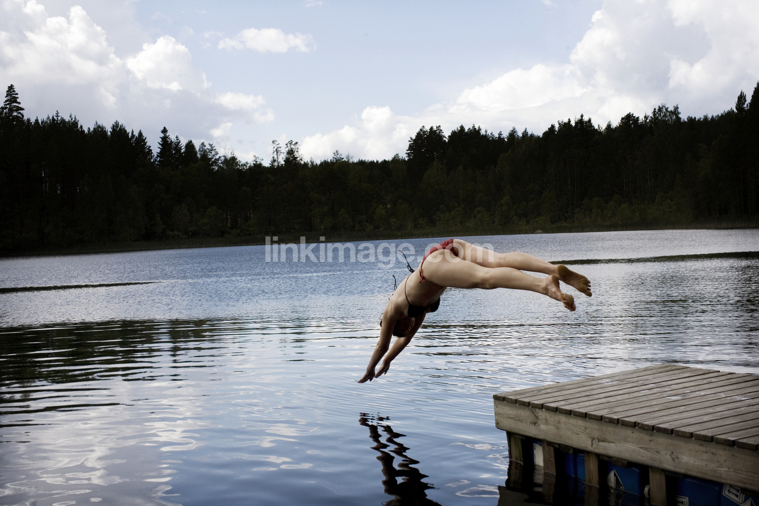 bridge, water, pop, bath, girl, female, nature, summer, lake, forest, cutting gÅrdsjÖ, jump, sky