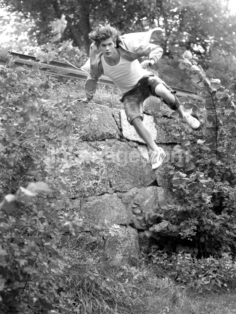 - male, skipping, speed, jump, guy, forest, wall, sports, stone, parkour, hobby, pleasure