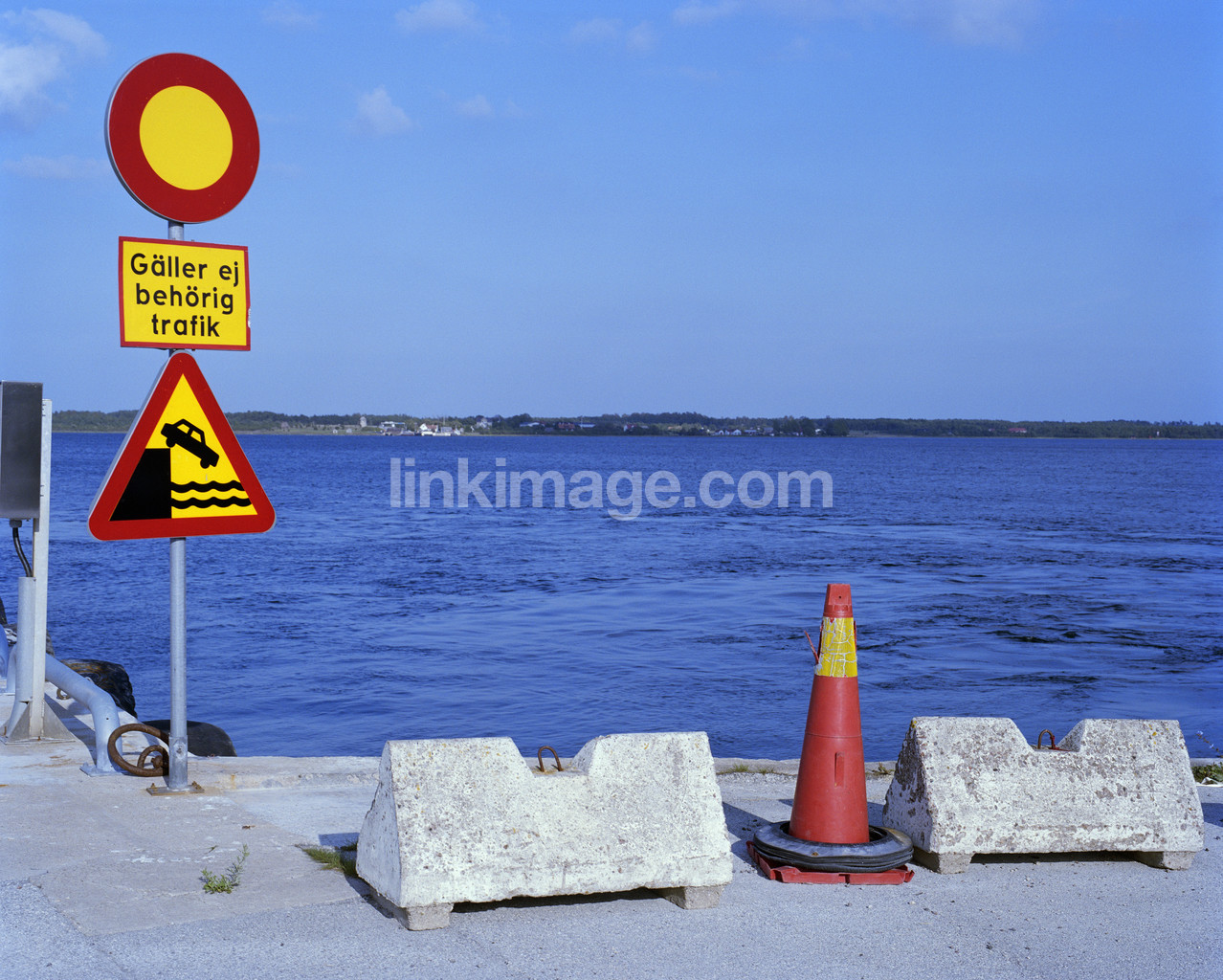- traffic sign, sea, berth, port, car, warning, warning sign, water, bridge, sign