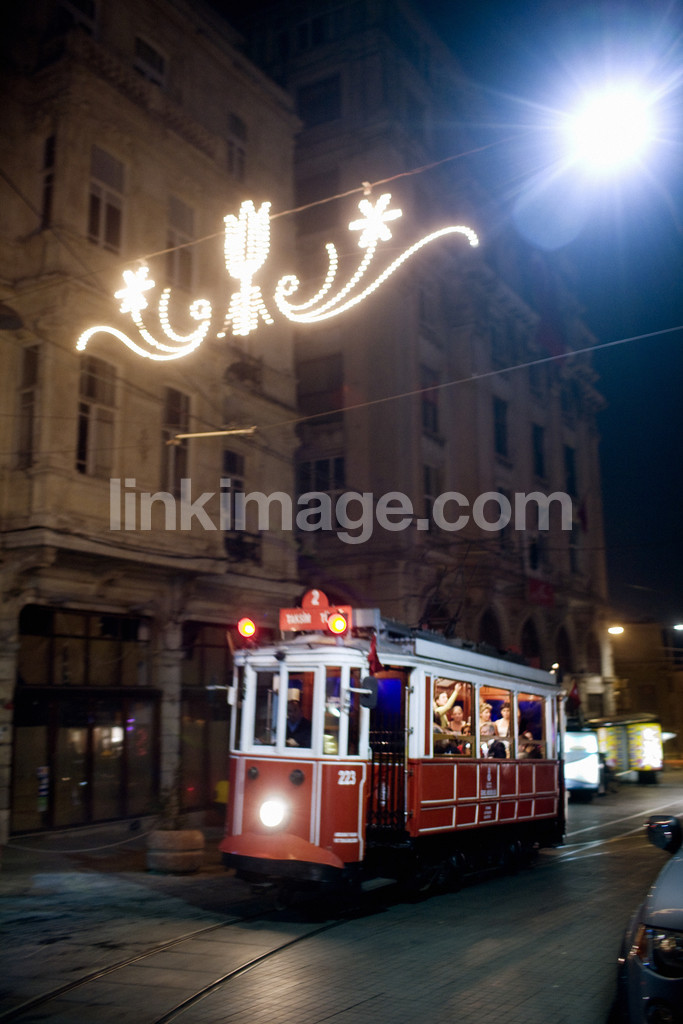 - tram, istanbul, night, light, lights, street, transport, turkey