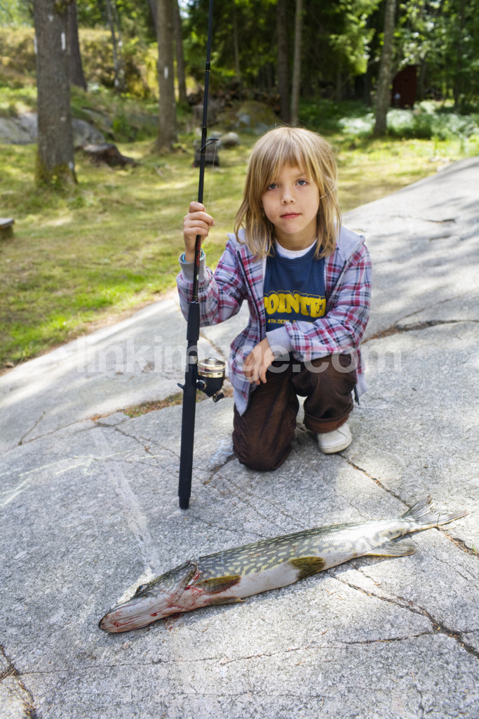 summer, fish, boy, guy, proud, large, capture, catch, gain, pike, fishing rod, pose, happy
