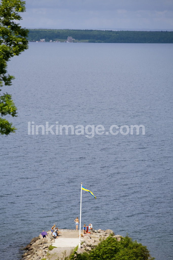 summer, sweden, bridge, bath, island, visingsö, sun, weather, lake, water, flag, holiday