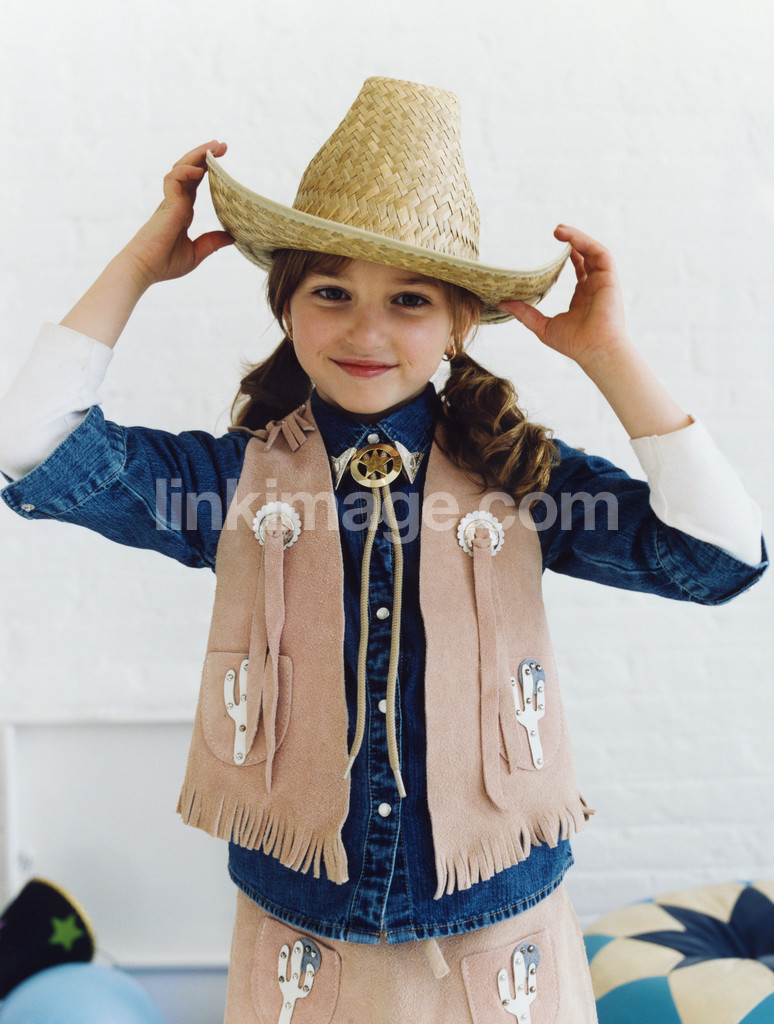 - children, girl, dressed up, cowboy, hat