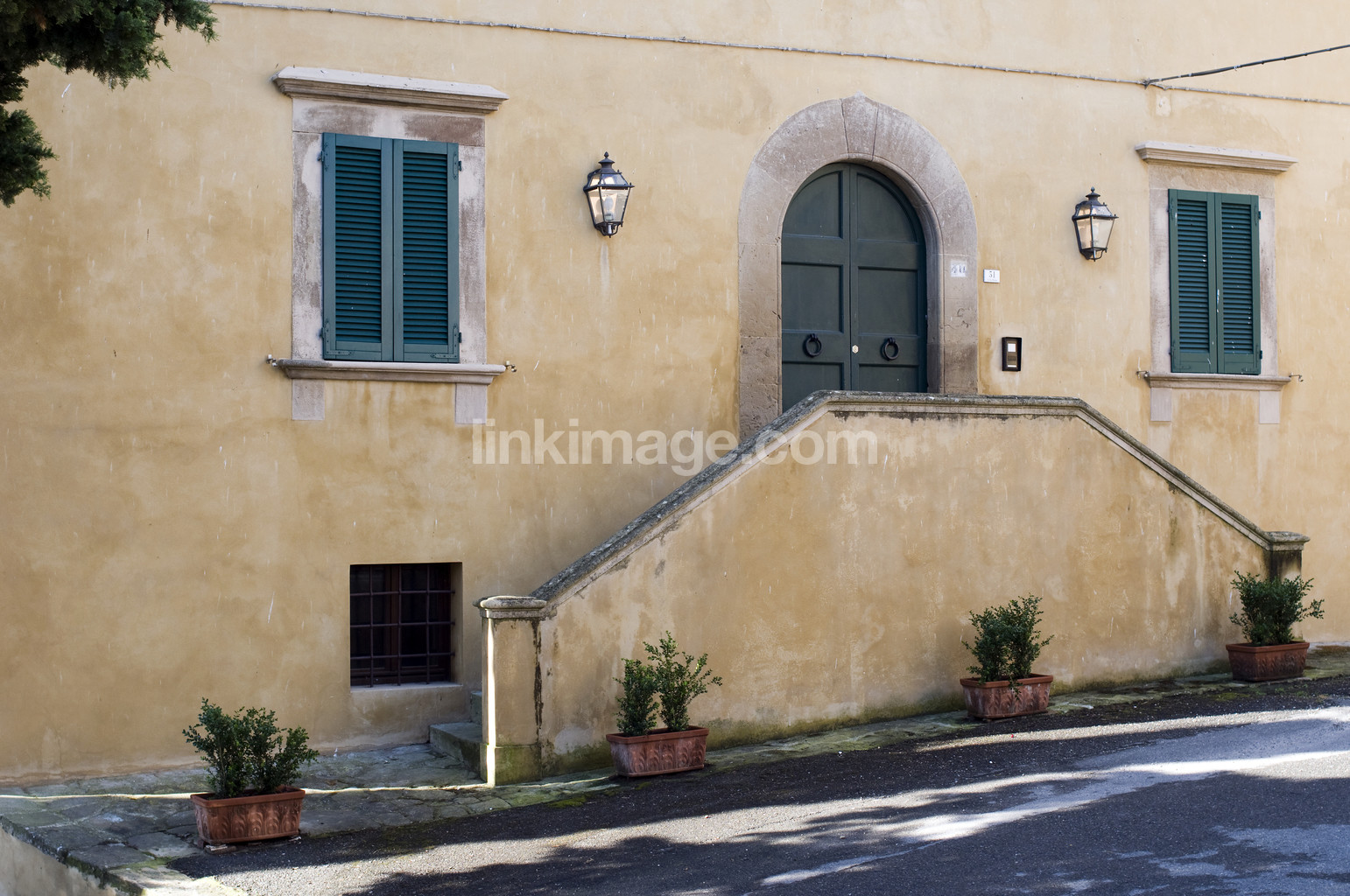 italy, house, façade, staircase, wall, yellow, door, plants