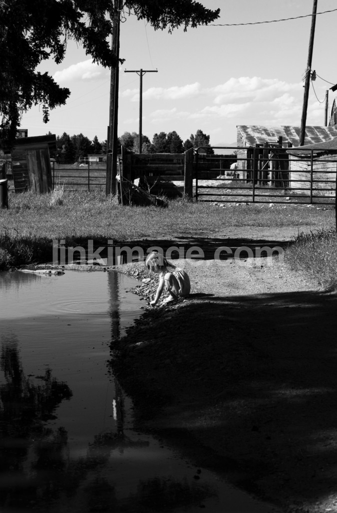 - children, girl, puddle, water, montana, usa, summer, swim, play, gate, yard