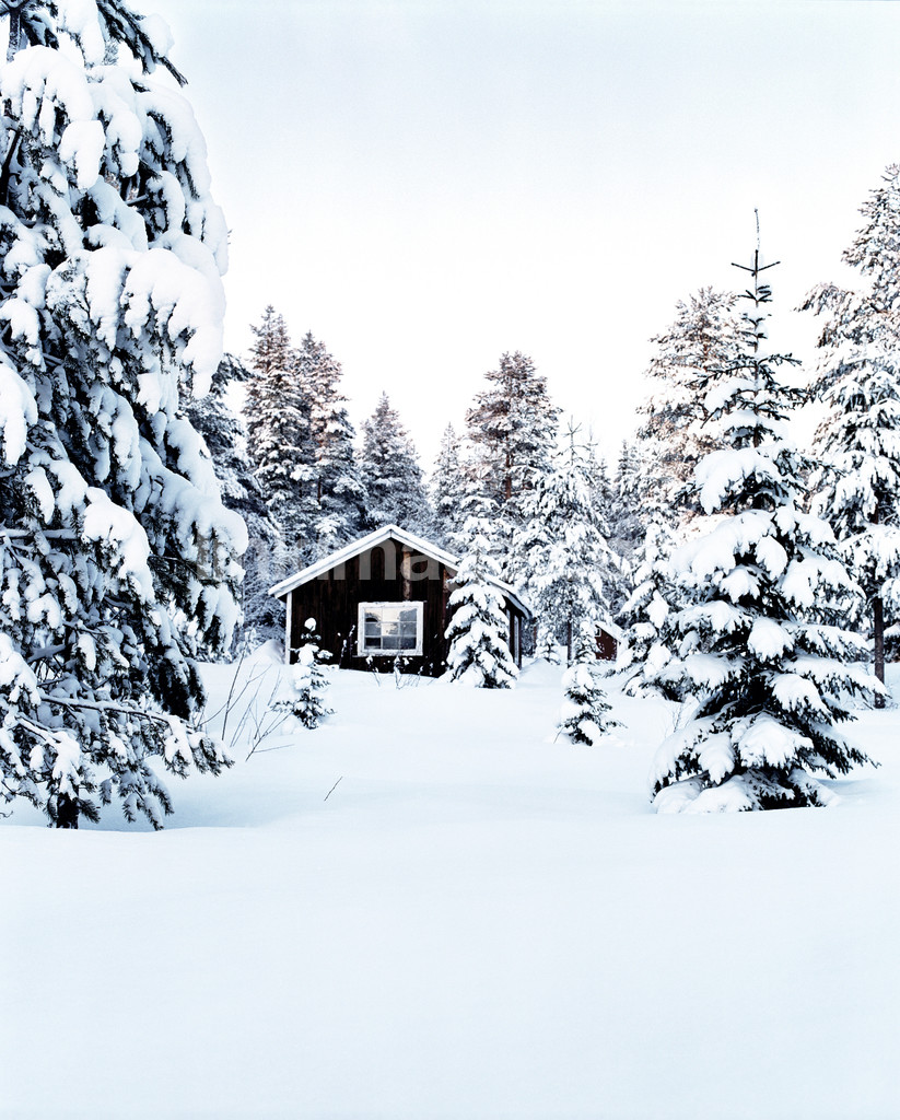 - snow, firs, cold, cottage, sunset, norrland, winter, house, winter cottage, spruce, fate, loneliness
