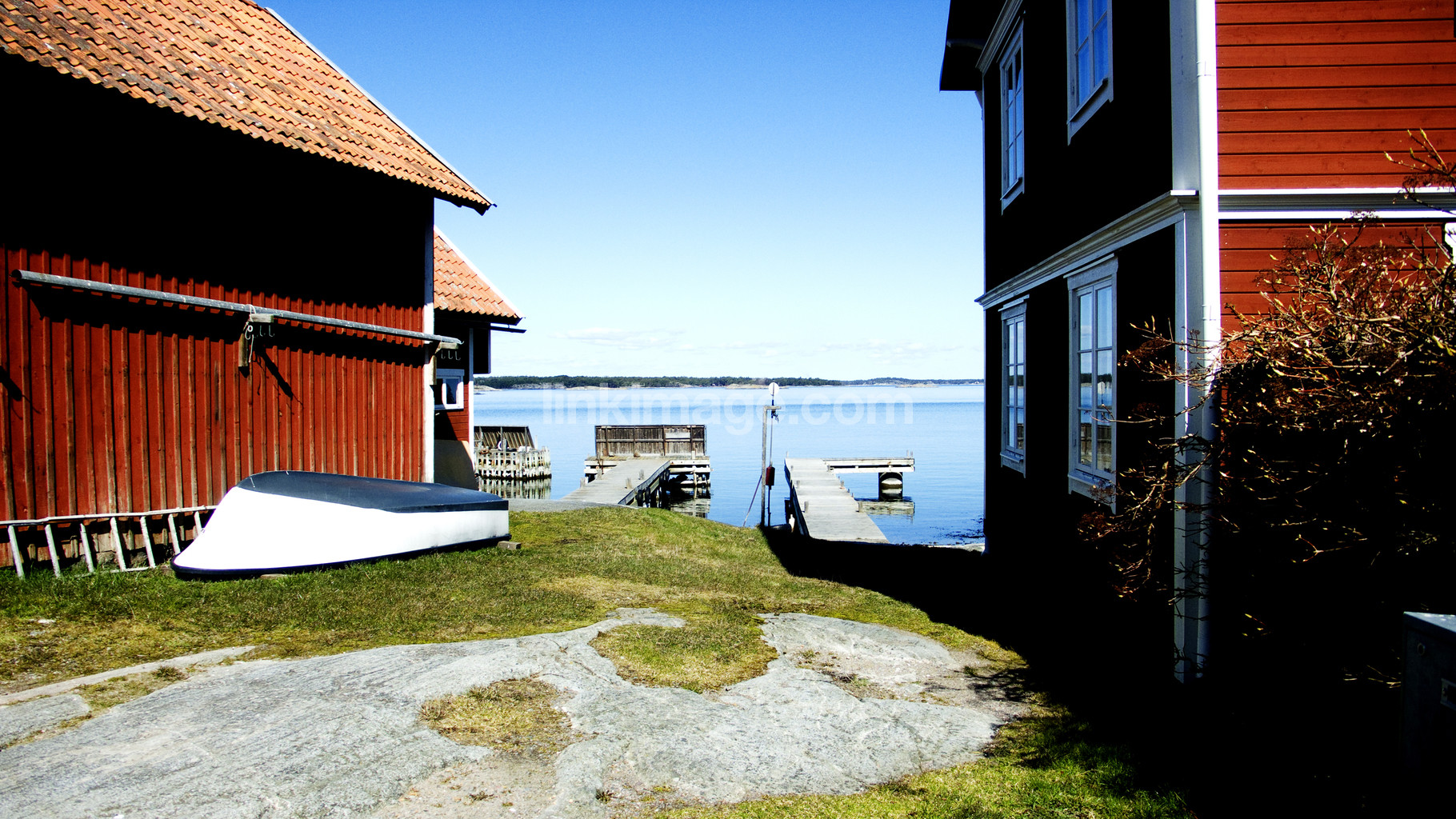 - archipelago, sandhamn, summer, red, house, bridges, bridge, boat, cut, summerhouse