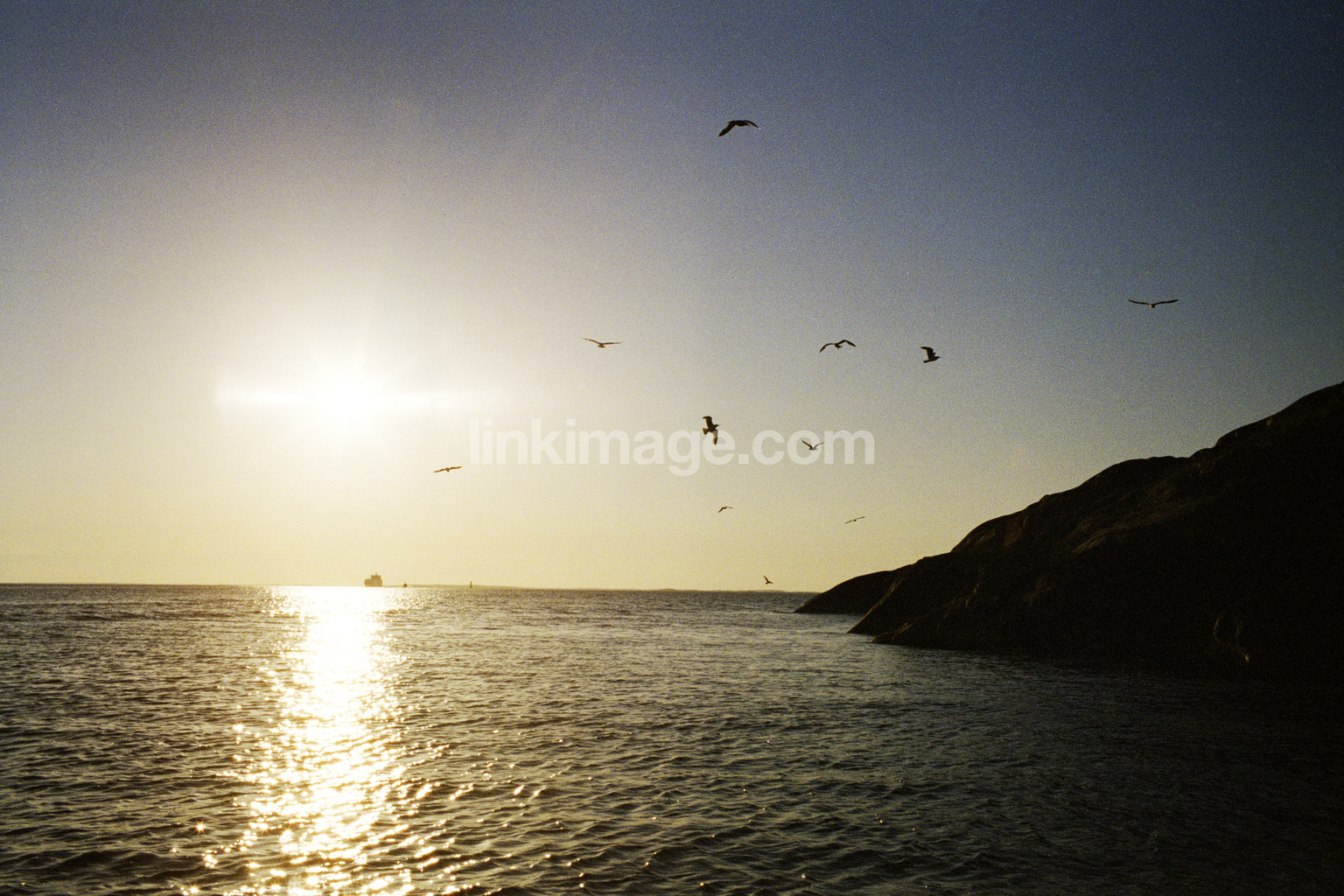 - sea, water, sun, dusk, bird, view, views, cut, rock, summer, sky, backlight