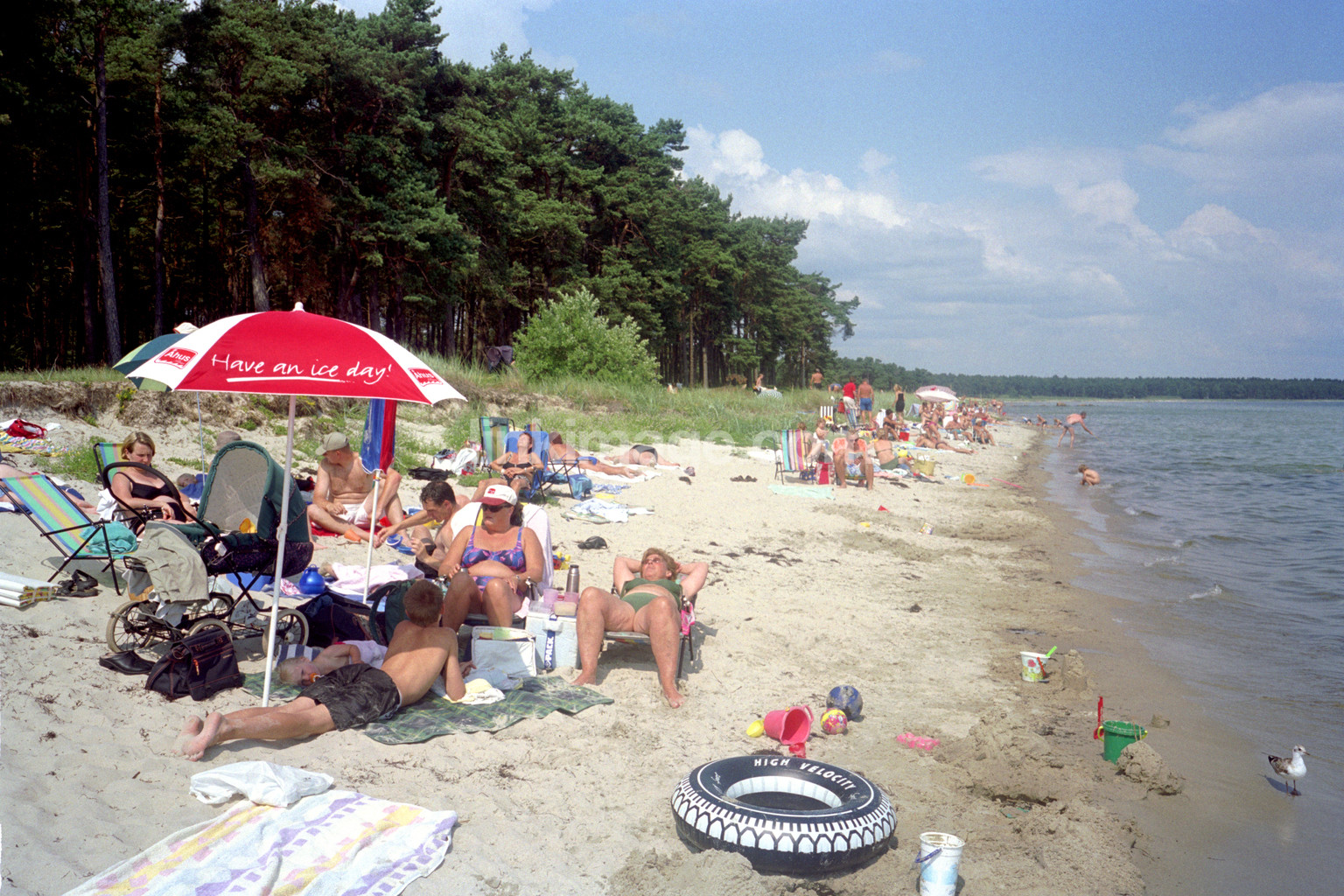 bath, shore, sand, water, sun, parasol, summer, åhus, sea, swimming ring, family, coast