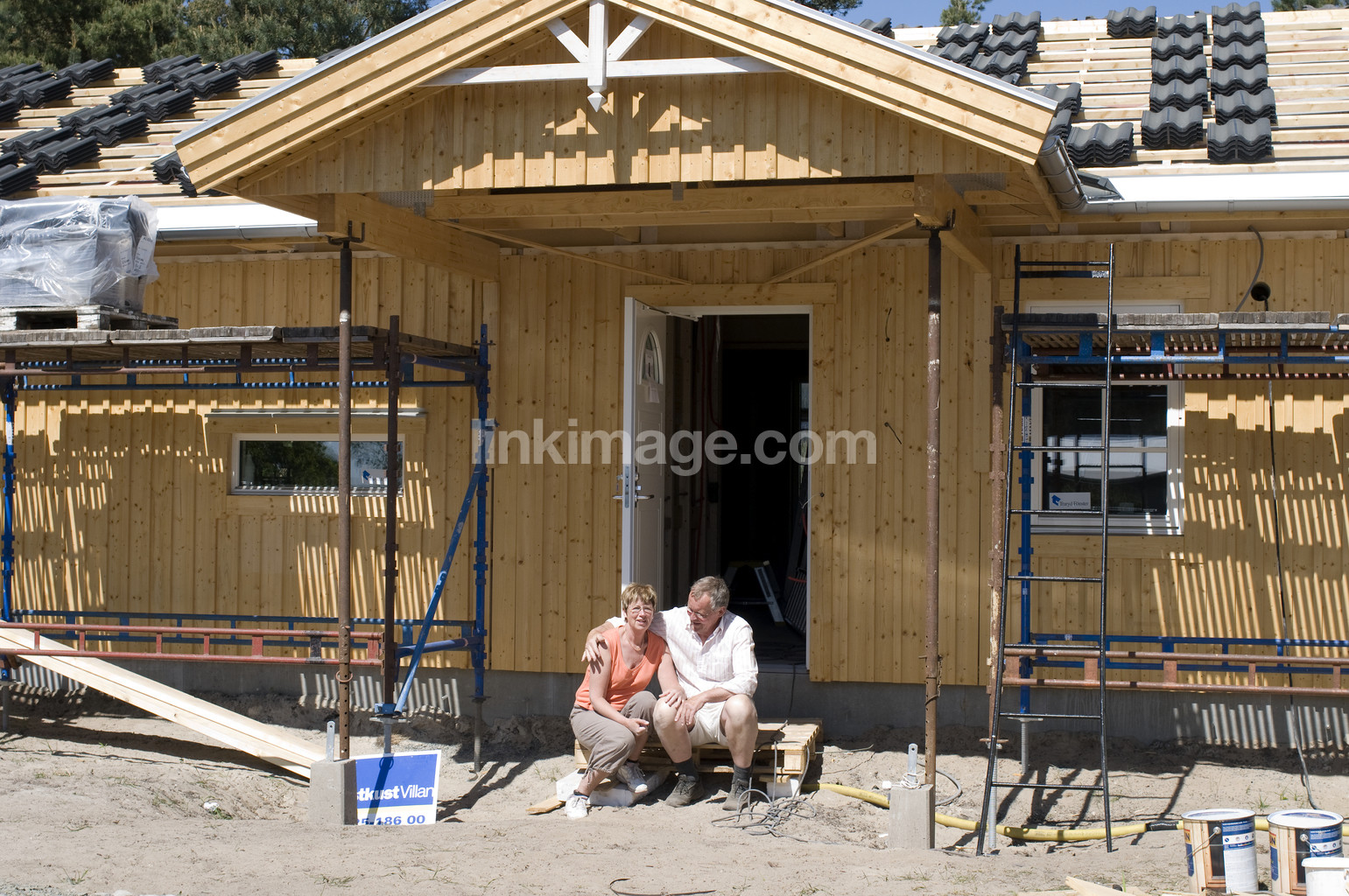 house, lodging, couple, family, build, wood, new, male, female, housing, villa, hug, proximity, tenderness