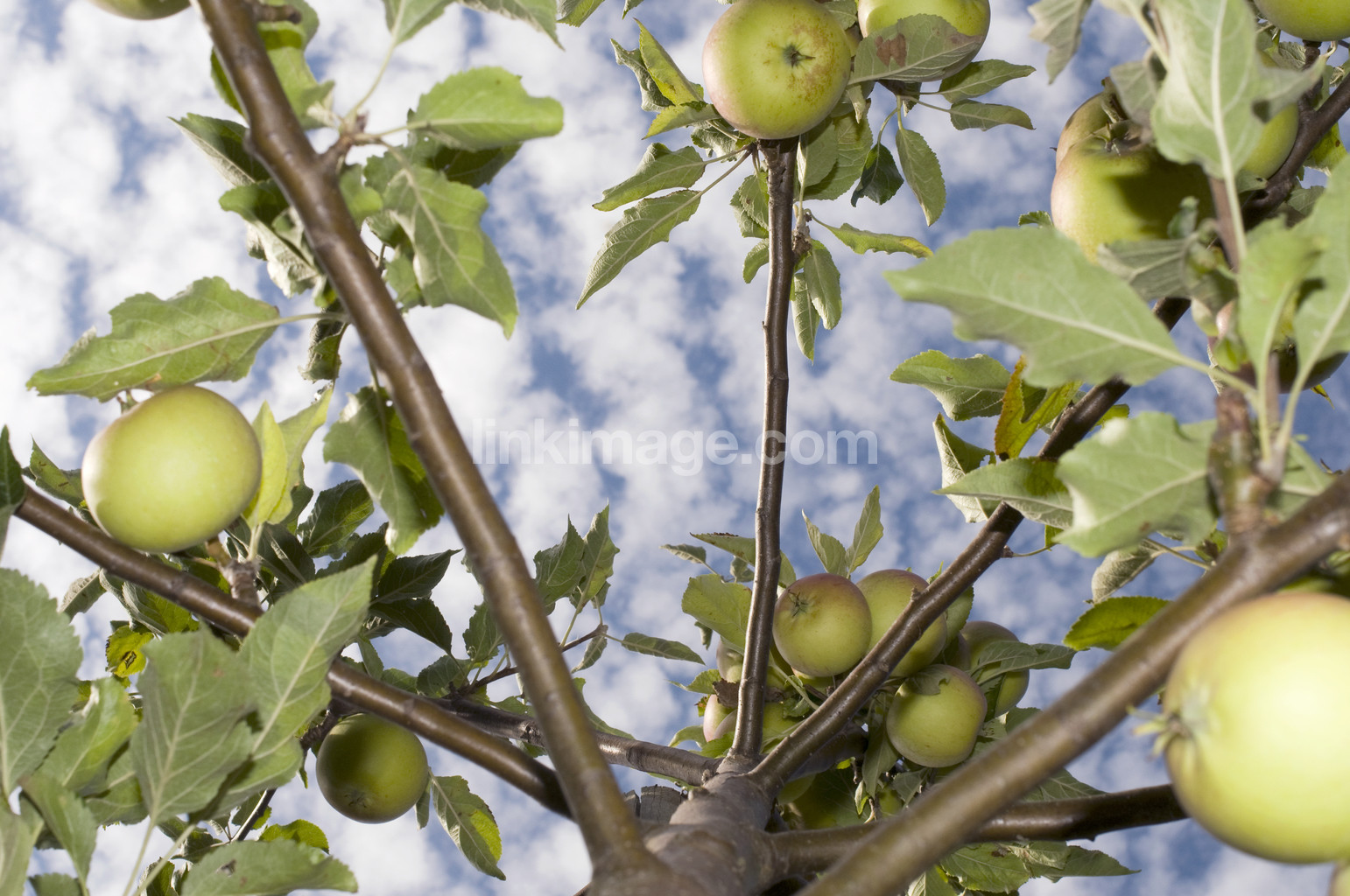 fruits, apple, tree, branch, leaf, growing, cloud, sky, summer, health, green